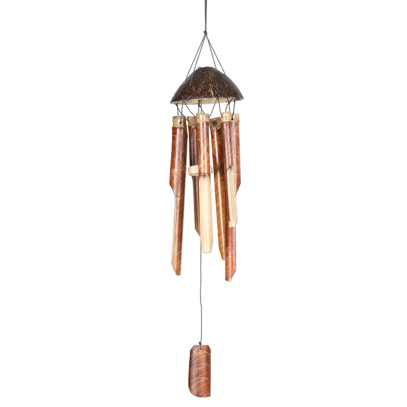 Immerse yourself in the tranquil melody created by natural bamboo swaying in the gentle breeze. Handcrafted by Balinese artisans using bamboo, coconut shell and albesia wood, this splendid wind chime by Sindhu Nata comes equipped with a durable nylon cord making it easy to hang on your garden, porch or your favorite outdoor spot.