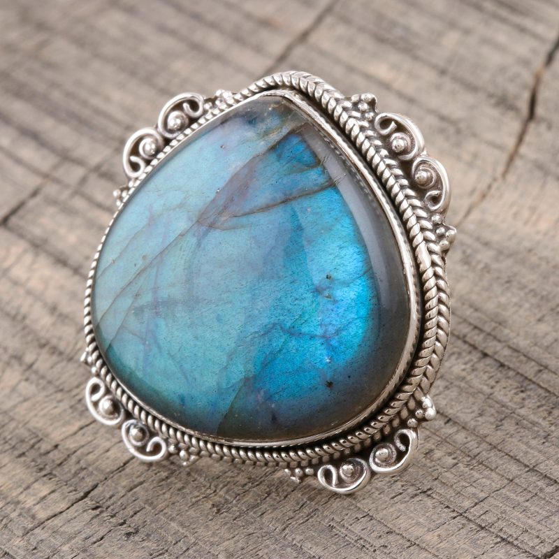 Shimla Shadow, labradorite ring has an intense blue color that can only be seen when receiving the actual ring. The picture does not capture the beauty of the gemstone. The sterling sliver setting is an excellent design that enhances the labradorite ring. Extremely eye-catching. Happy with purchase.