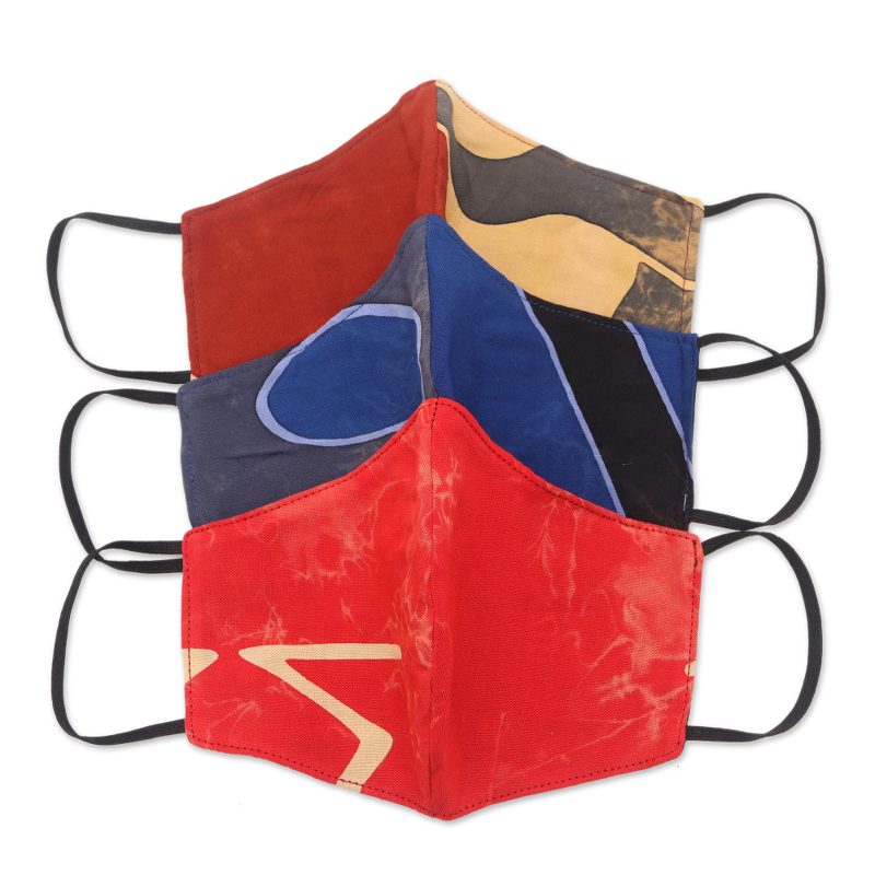 Protect yourself from the elements with this set of face masks designed by Bali's Nyoman Nadri. Crafted with rayon using a batik dyeing technique, the masks are double-layered with cotton linings for extra protection, and feature elastic ear loops.