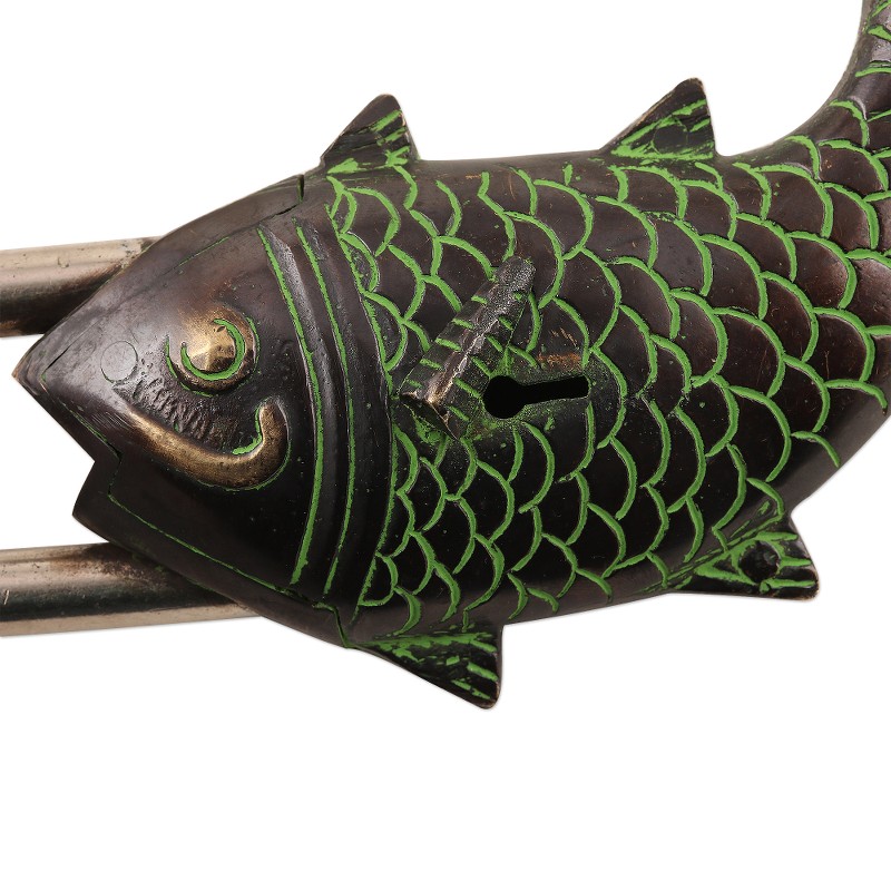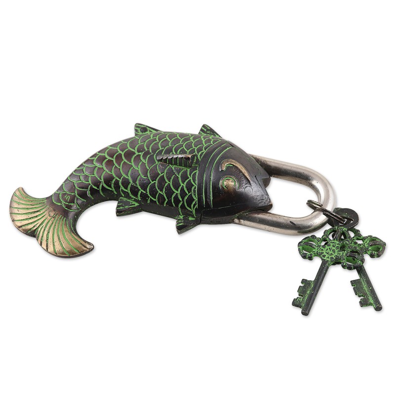 Keep your valuables under lock and key with Khalid Ali's beautiful set, which is coated with an antique green patina for timeless appeal. Accompanied with a spare key, the brass set is crafted by Indian artisans, who cast the fish with fine detailing.