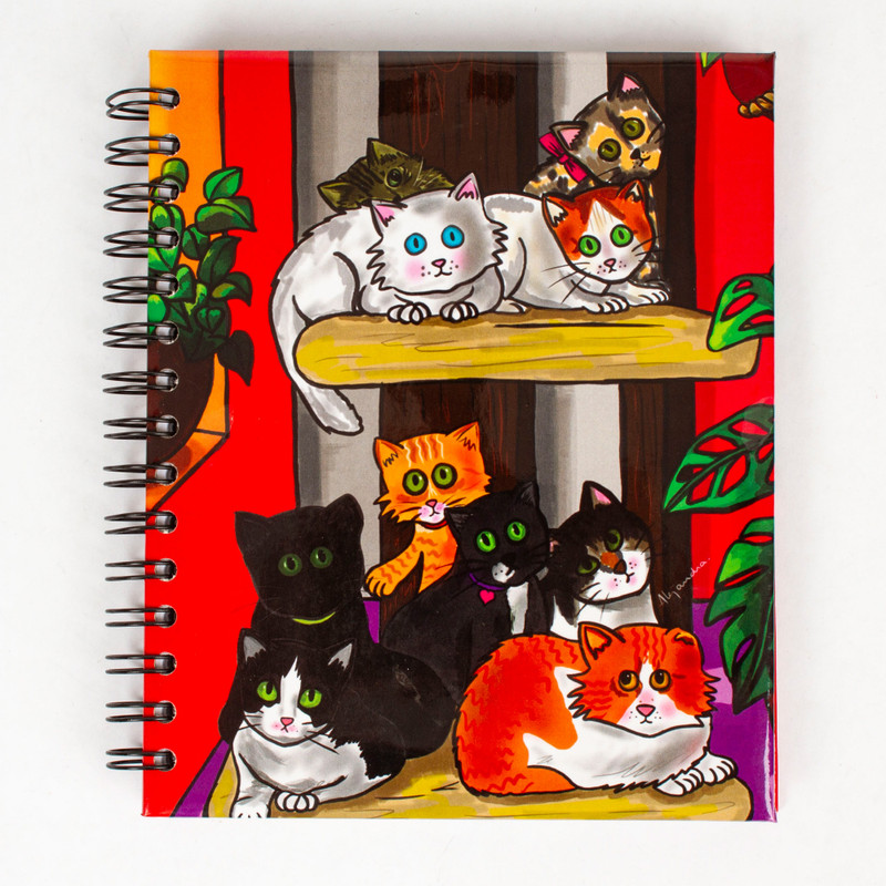 The cover of this journal is from artist Alejandra Aceves' "Everyday Stories" collection of illustrations, in which she captures the charm of everyday moments. In this illustration, she captures the simple joy of cats. Whatever color, size, and temperament they may have, they are all unique and special friends. The cheerful artwork graces a spiral-bound notebook of lined paper. Use it to record the daily joys and special moments in your life.