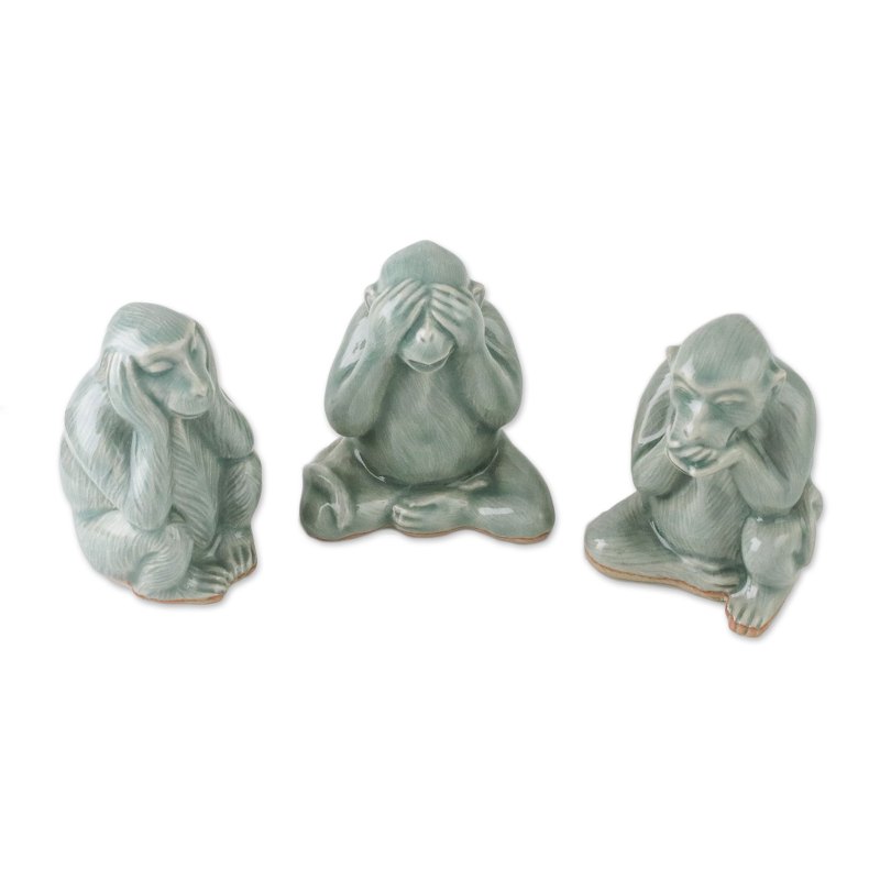 Offering a maxim of wisdom, three monkeys remind you to "see no evil, hear no evil, speak no evil" in this set of figurines from Thailand. Duangkamol designs the figurines, crafting each one of ceramic with a crackled celadon glaze.