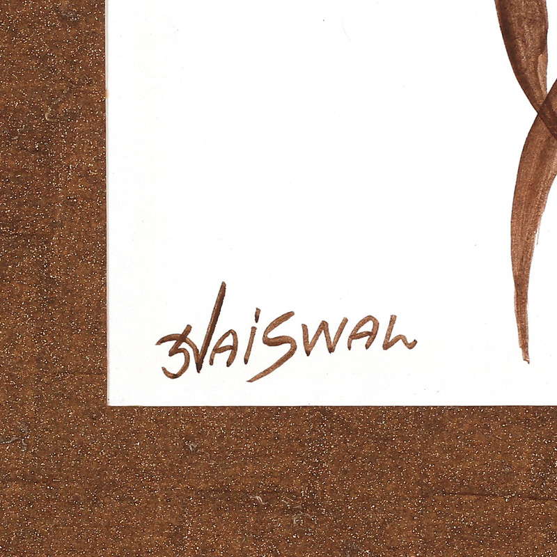 Grace and nature merge in this expressionist composition, expressing beauty through dance. India's Sunil Jaiswal uses a brown palette to portray a refined dancer holding a little bird as a symbol of grace. Acrylic and watercolor combine in each detail, allowing the piece to exude passionate sensations.