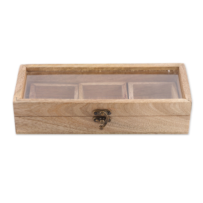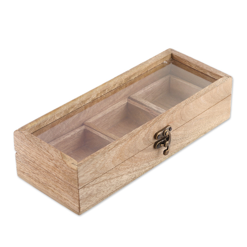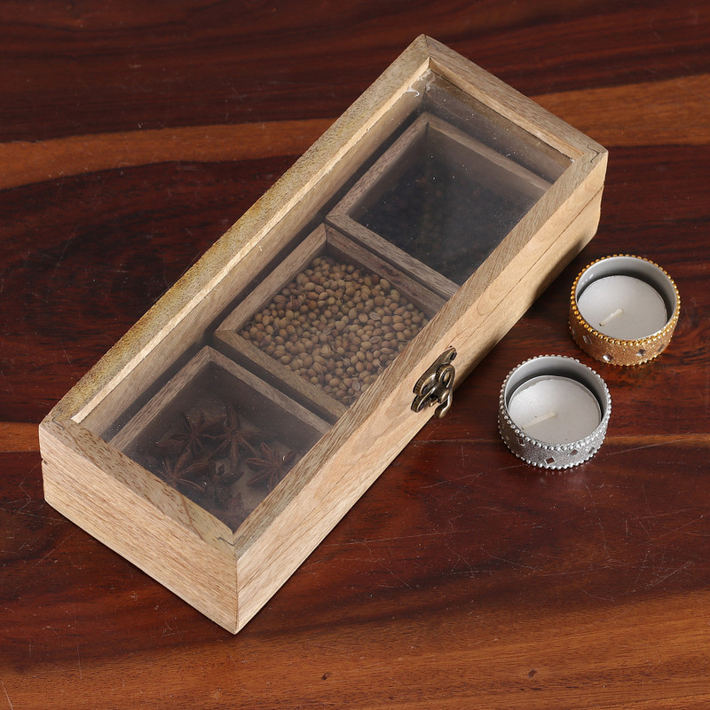 This rectangular mango wood box helps you keep your favorite spices organized while preparing your signature dishes. Showcasing its natural grain, Indian artisan Ashish Mehta's practical creation features three detachable compartments, an acrylic lid and a sturdy iron latch, making it a safe spot for the seasonings you can't live without.