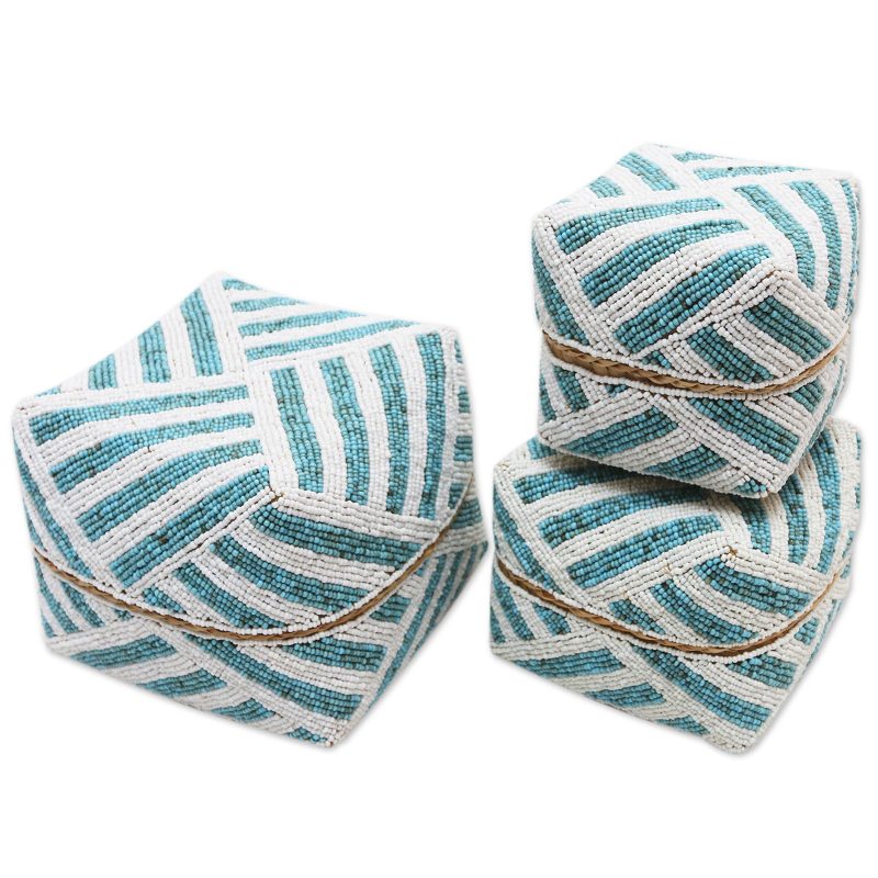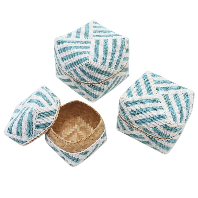 You can find our decorative bamboo boxes 'Coveted Keben' (set of 3) by Kadek Casa in decor accessories categories such as Embellished Decorative Boxes, Bead Decorative Boxes and Wood Decorative Boxes. Enjoy exploring these sections for other Novica treasures.