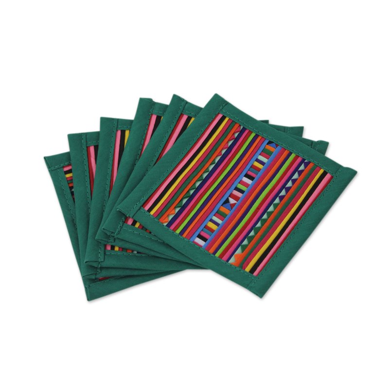 Woven by hand in the style of Thailand's Lahu people, geometric motifs appear in colorful cotton. Artisans from Thai Tribal Crafts create this beautiful set of six coasters. Lahu women often augment their family's income with textile crafts, including this type of patchwork appliqué.