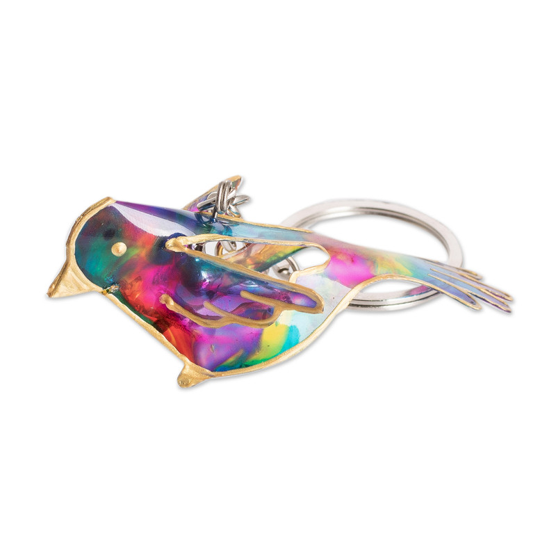 A cute key chain will remind you of your commitment to a pollution-free environment while adding a magical touch to your items. Crafted in Costa Rica by Karolyn Cruz, this accessory features a recycled plastic bird with a little brass jingle bell. In addition, a nickel chain ensures a strong hold.
