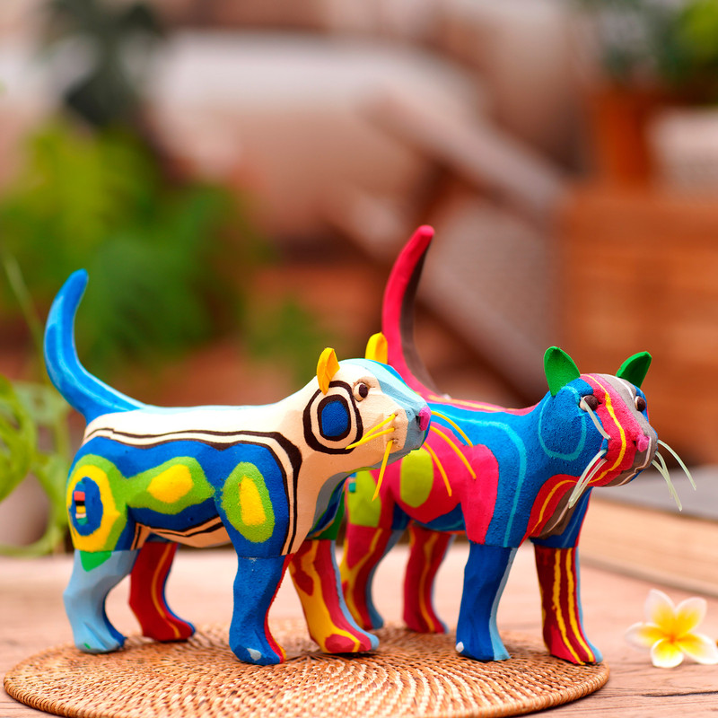Working to clean up oceans and waterways, recycle, and employ the local community, Ocean Sole of Kenya creates amazing sculptures from recycled flip-flops. This colorful cat sculpture is formed and hand-carved from approximately 8 flip-flops, and can take as much as 7 hours to create.
