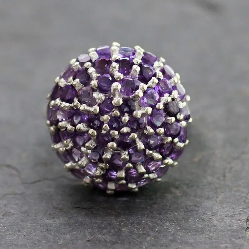 Evoking sweet purple blossoms covering a jacaranda tree, Alok Jain presents an exquisite ring. The design is handcrafted of sterling silver to showcase 1 gemstone carat.