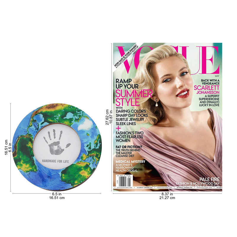 Place a cherished photo above the different continents seen from above in this round wood photo frame presented by Kamal in India. The frame's round border features a laminated, printed map of the world, giving your photos a worldly vibe.