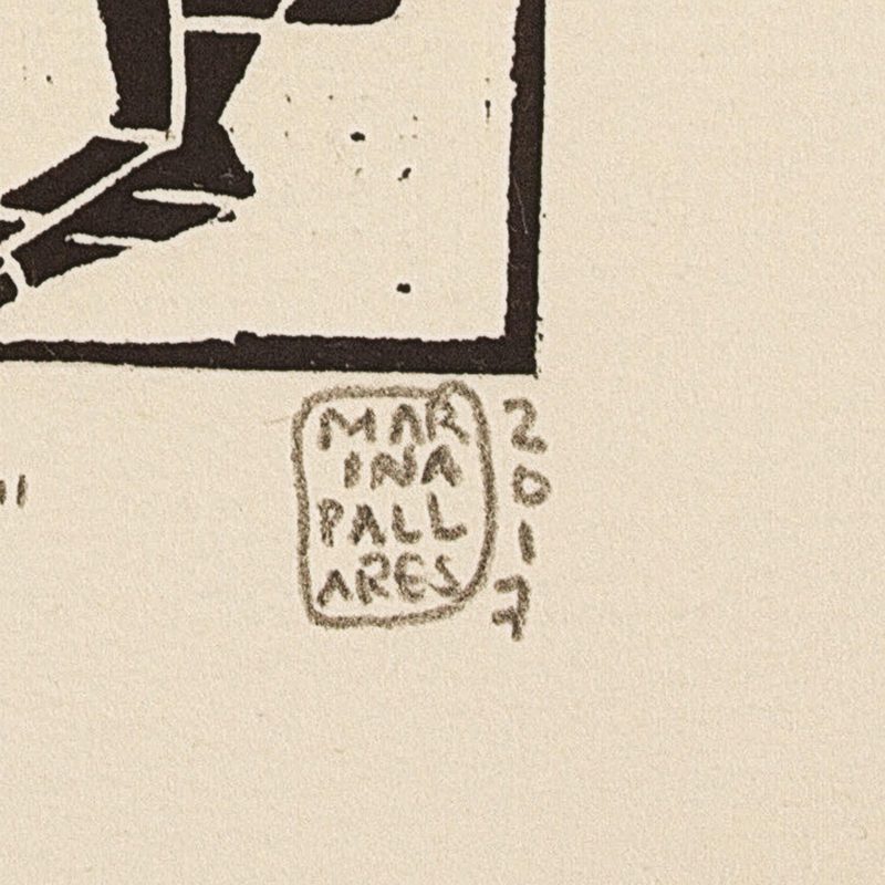 "In Baja California Sur, there's a place where I love to go running in the middle of the desert. Wild hares often leap into sight and their speed is impressive!" Marina Pallares confides. "I've also seen photos of when they fight to establish their territories. I wanted to share their beauty and relate them with the night. Although you don't see it, Mexican legend tells how a rabbit lives on the moon." Working in black and white, she creates a small-scale linoleum block print depicting the lean, long-eared rabbits.