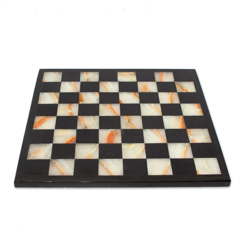 Crafted by the talented artisans of the Sierra Family, this chess set displays the beauty of dark marble alongside verdant green onyx. Each element is carved by hand, allowing a sturdy structure in the pieces and board, which makes them perfect as home decor or a fancy way to challenge your friends.