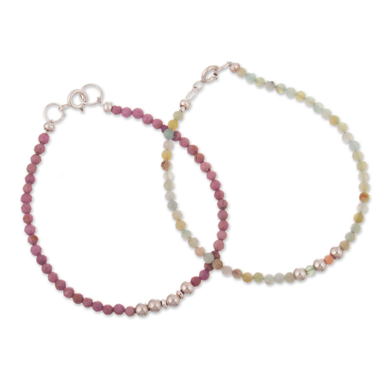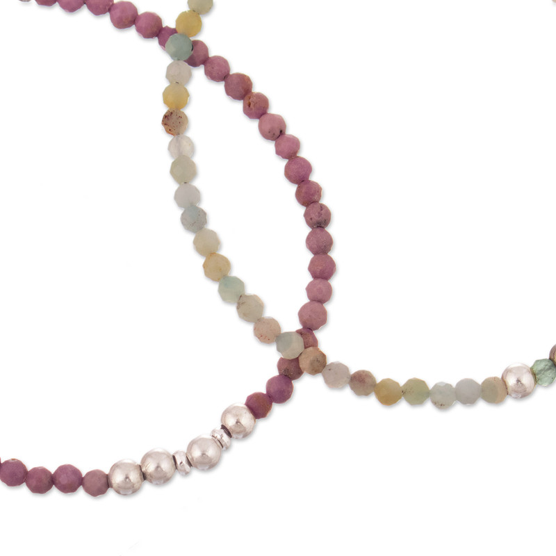 The talented hands of the artisan duo Sandra and Lily craft prophecies of sweetness and tenderness. Working with dedication and love in their atelier in Peru, the team uses phosphosiderite and opal stones to create this pair of beaded bracelets, one representing wisdom and the other symbolizing destiny. Luminous sterling silver pieces enrich the accessories, boasting a high polish finish.