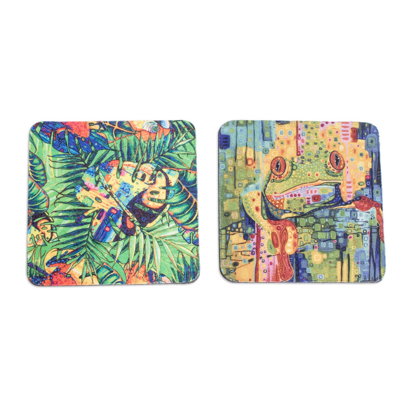 You can find our rubber coasters 'Tropical Experiences' (set of 2) by Ferlander Arguedas in tableware categories such as Animal Themed Barware, Nature Barware, Leaf and Tree Barware, Tropical Decor Barware and Rubber Barware. Enjoy exploring these sections for other Novica treasures.