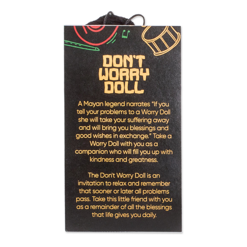 Worry dolls or muñecas quitapenas guarantee you will not have to preoccupy with any troubles because if you place them under your pillow, they will help you overcome your fears and anxieties. This is the belief that dates back to Mayan times in Guatemala which artisan Hector Ponce pays tribute to with a set of four worry dolls handcrafted from cotton, cibaque fibers and cotton cord in the shape of a man dressed in lively colors without a care in the world.