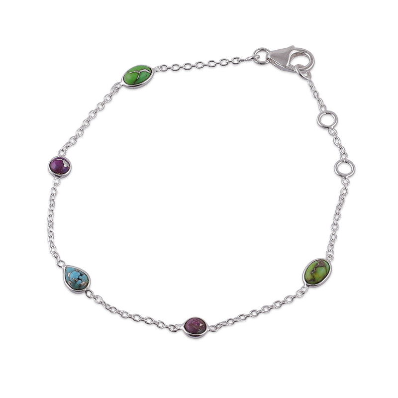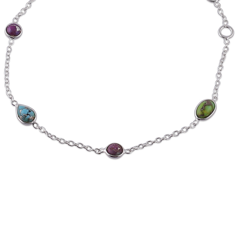 This adjustable sterling silver station bracelet delivers pure sophistication through its carefully spaced reconstituted turquoise stones that pop against the polished metal backdrop like ocean droplets frozen in time. Indian designer Neetu Barathi's thoughtful creation ensures the perfect fit for any wrist while the vibrant gems inject personality into everything from casual denim to formal evening wear.