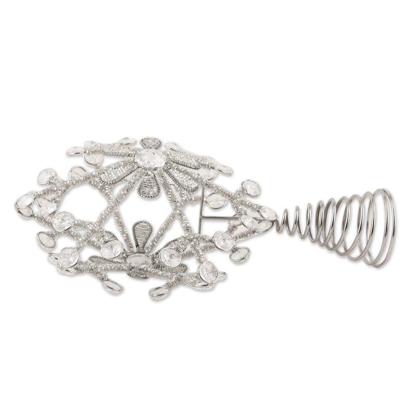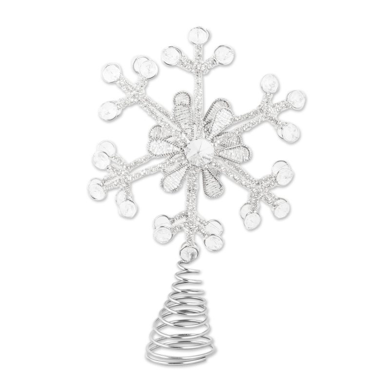 Add some dazzle to your tree with this wonderful tree topper from India's Arti Sharma. The sparkling topper is crafted from aluminum in the shape of a snowflake, and lavishly adorned with silvery glass beads and faceted clear acrylic 'stones'.