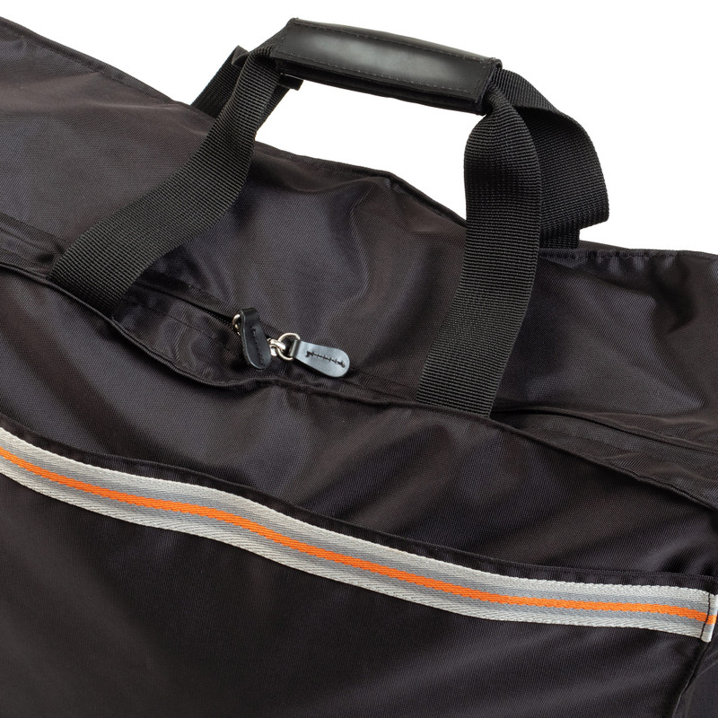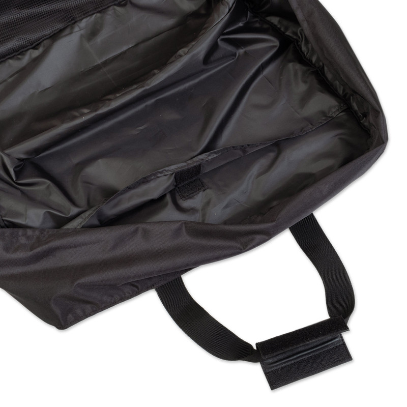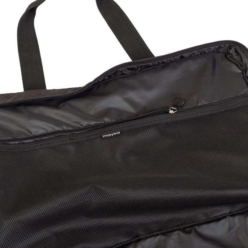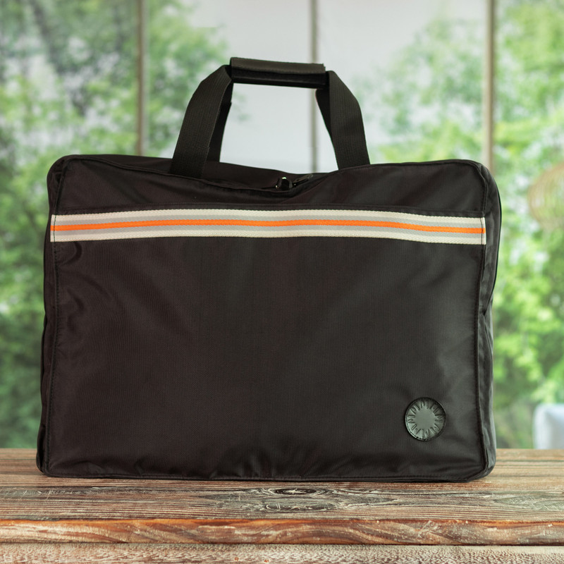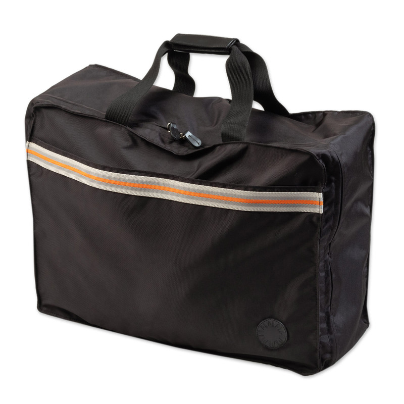 Safe travels! This practical black polyester travel bag is all you need for short stays because it has lots of space for your belongings. The case is made by Peruvian artisans Karina and Maybee and features polyester lining, two external pockets for medium-size objects and three interior pockets for medium and large personal effects.